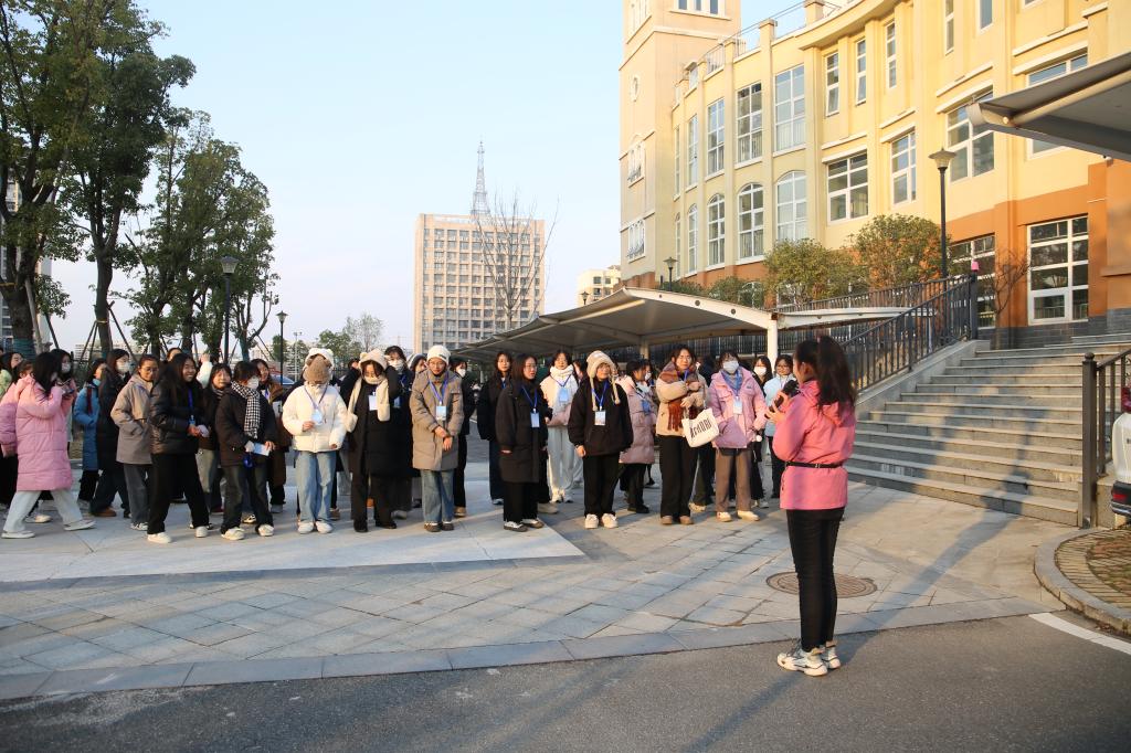 12月19日下午,在学前教研室主任康耀华、教师谢鑫、辅导员姜红的带领下,教育学院学前教育专业2023级学生集中赴信阳市百花幼儿园开展观摩学习活动。