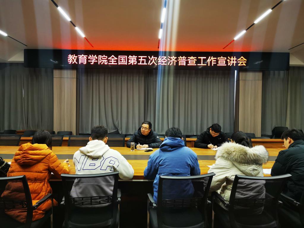 1月11日上午,教育学院在109会议室召开了全国第五次经济普查宣讲会,学院党总支书记张甲楠、学工干事郝昊和全体辅导员老师参加了此次会议。