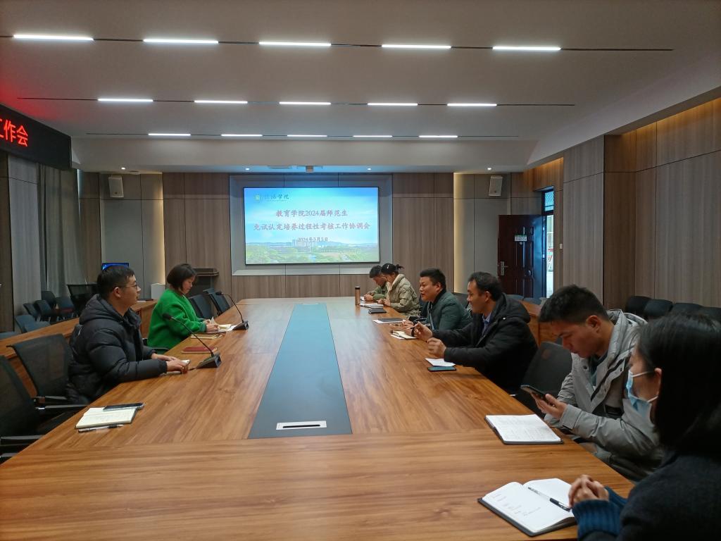 3月5日上午,教育学院组织各专业教研室主任、2020级辅导员、2020级各班班长、学委、团支书及骨干成员,在社科楼109举行了2024届师范生免试认定中小学教师资格培养过程性考核工作协调会,教学副院长段海丹参加会议。