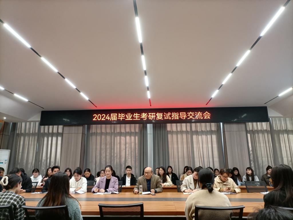 会议前期,我院组织各专业根据学生报考院校及专业特点为每位考研学生分配相应的指导教师,并切实跟进学生的复试进度,做好扎实的指导,并邀请经验丰富的老师作为代表与同学们进行交流。