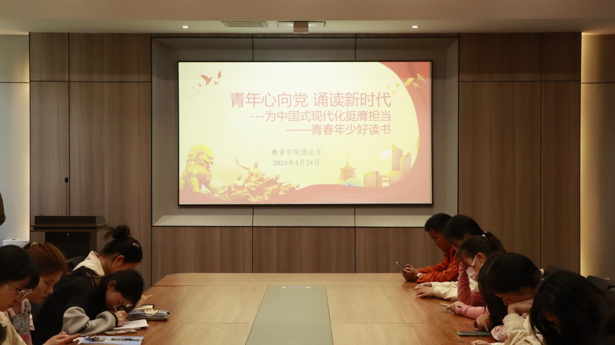 4月25日,教育学院团总支和点津教育学社在109会议室举办了“青年心向党,诵读新时代”红色主题读书分享会。点津教育学社和学生会组织部和宣传部全体成员参加了此次分享会。