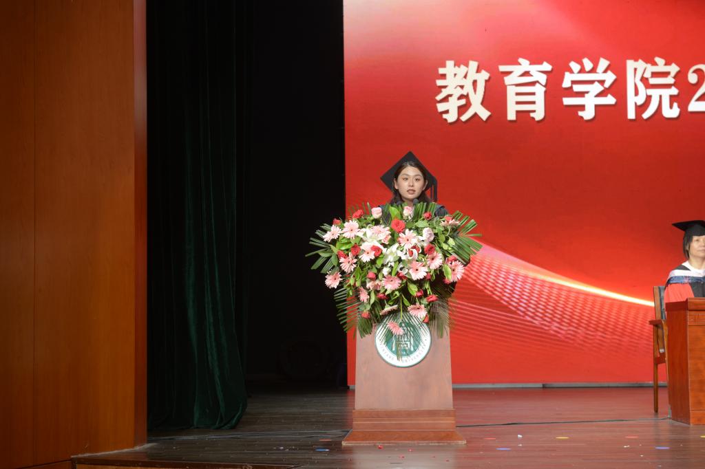 会上,毕业生代表、河南省优秀毕业生、信阳学院第14届校园明星、成功考取2024年河南省选调生的2020级小学教育本科2班韩佳益同学在发言中回顾了自己大学四年的求学生涯,有努力、有收获、有成长。深刻表达了对母校的眷恋和感恩之情,也会带着这份感情踏上新征程。