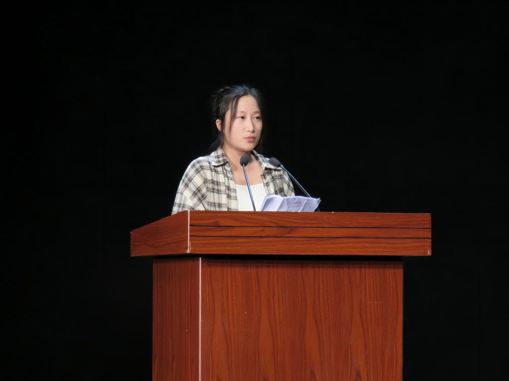 新生代表李依宸同学发言,她表示,非常荣幸加入信阳学院教育学院这个大家庭,教育学院充满活力与朝气,学院领导老师亲切关怀,学长学姐耐心教导,深深感动着每一位初入大学校园的学子们。同时,也表达了对大学生活的憧憬与决心,立志要树立远大理想,做不懈奋斗的新时代青年。
