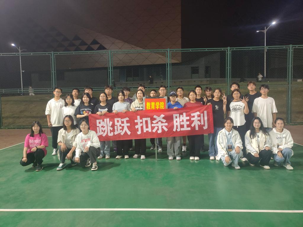 排球赛上,球员们发球有力,接球沉稳,传球精准,扣球迅猛,不放弃任何一个球,从而达到“跳跃,扣球,胜利”的目标,彰显了新生们朝气蓬勃的青春活力。