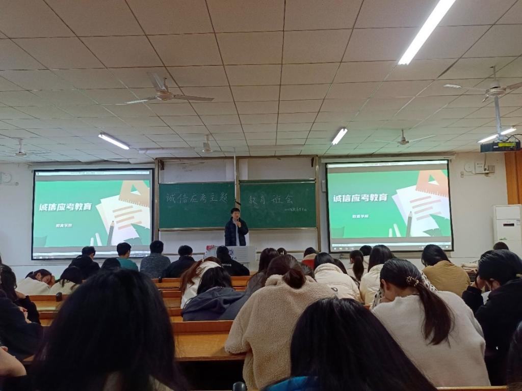 为进一步加强学风建设,严肃考风考纪,12月1日-10日教育学院在各班级教室举行了以“考风考纪”为主题的教育班会。此次班会旨在引导学生树立正确的考试观念,增强学生的诚信意识,为即将到来的期末考试营造良好的考试氛围。