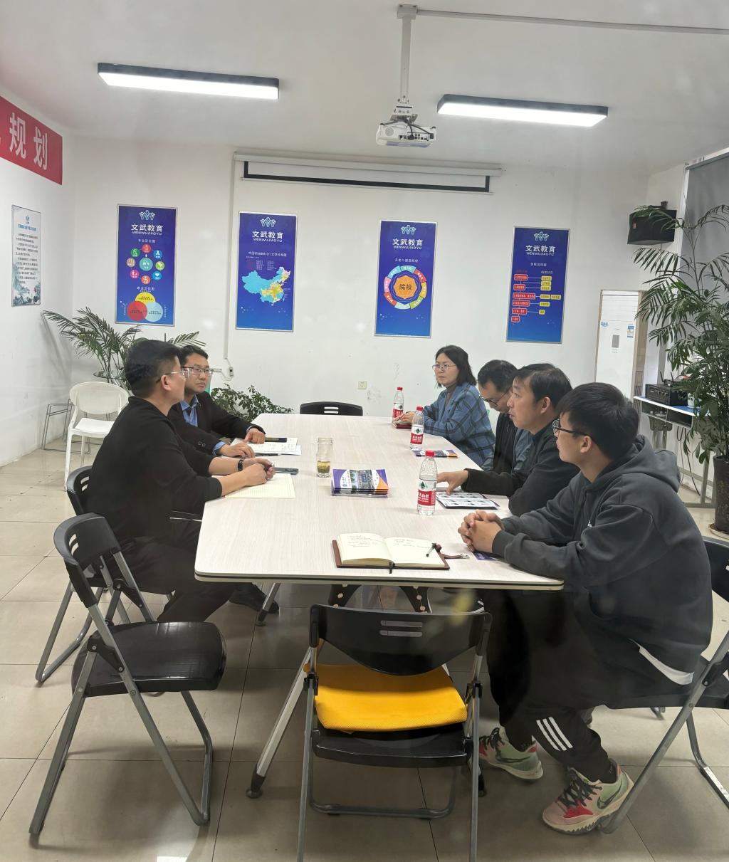 随后,刘颖方和胡超一行来到了信阳市文武教育科技有限公司,与徐校长和马校长进行了座谈。交流中,两位校长对教育学院在专业设置、实践教学以及学生综合素质培养等方面的努力给予了高度评价,并表达了与教育学院进一步加强合作的强烈意愿。该企业注重师资的培训和发展,愿意为毕业生提供丰富的实践机会和多元化的就业岗位。