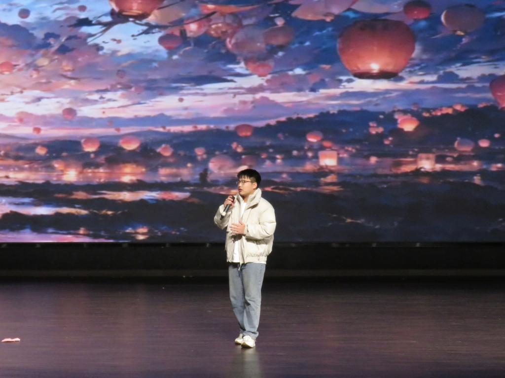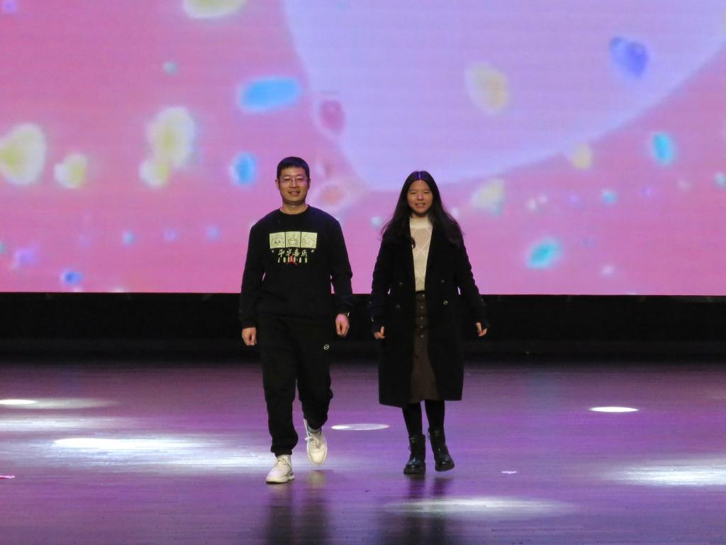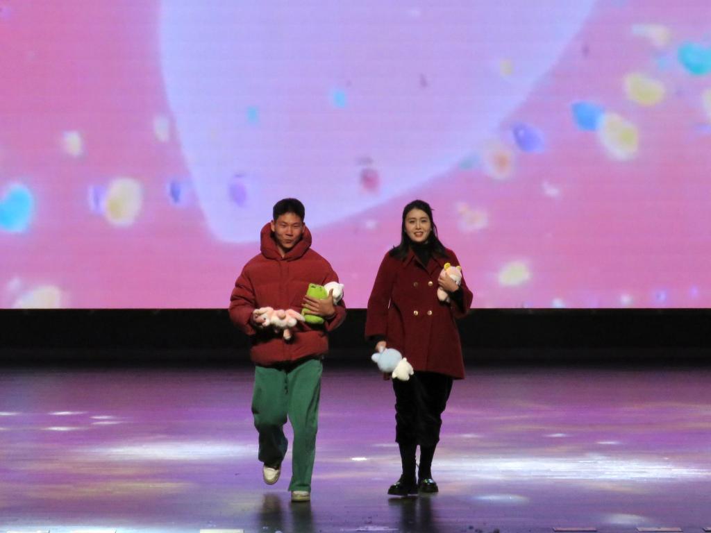 晚会节目精彩纷呈,创意迭出。舞蹈《向快乐出发》以其欢快的旋律和舞者们绚丽的舞姿,为晚会拉开了序幕,营造出热烈欢快的氛围。随后,周巾翔同学深情演唱《找自己》,悠扬歌声穿透心灵,让大家感受到了青春的活力与自我追寻的勇气。小品《确认过眼神》以其幽默诙谐的表演,赢得了观众的阵阵掌声和欢笑。皮影戏《小猫米罗》则巧妙融合传统与现代,展现了中国传统文化的独特魅力与创新活力,演员们的精湛演技让小猫米罗的可爱与机智跃然眼前。此外,师生T台秀也是晚会的一大亮点。时尚与经典并存,时装牛仔、优雅旗袍以及充满回忆的玩具总动员等元素,不仅为观众带来了一场视觉盛宴,更彰显了我院师生的团结合作与积极向上的精神风貌。