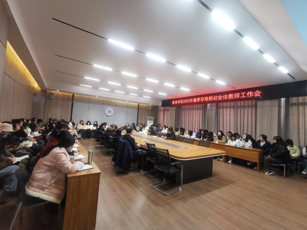 2月16日下午,教育学院在社科楼109会议室召开了2025年春季学期期初全体教师工作会,学院名誉院长、党总支书记刘颖方、副院长段海丹、专家教授和全体青年教师参加了此次会议,名誉院长主持了会议。