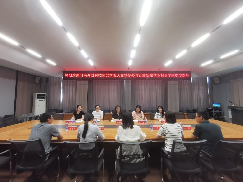 7月5日下午,河南开封科技传媒学院人文学院党总支书记朱利娟、副院长张悦带领应用心理学负责人、法学系负责人和学前教育系负责人等来我校进行考察交流暨支部联学共建活动。教育学院党总支书记刘颖方、副院长段海丹及部分教工党员代表、社会科学学院法学专业教师闫春丽等参加了此次活动,交流会在社科楼109会议室举行,刘颖方主持了交流会。