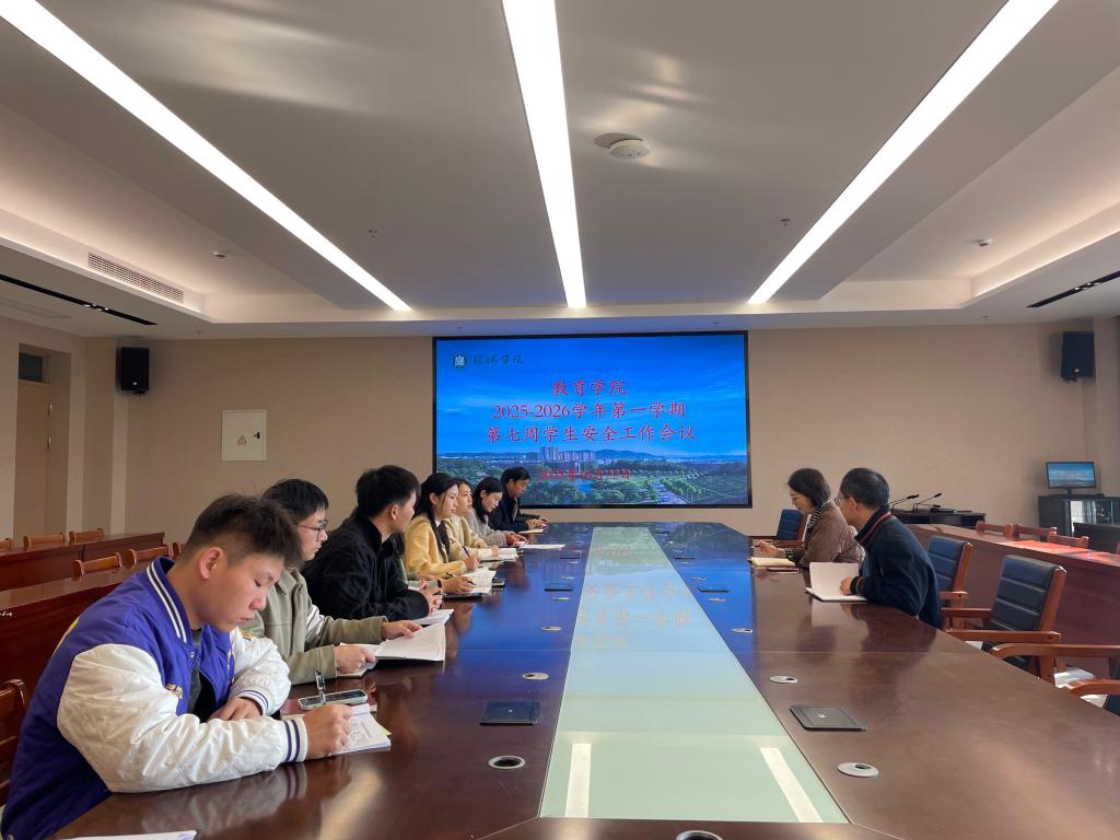 为进一步强化学生安全管理,筑牢校园安全防线,10月22日,教育学院在教三楼521召开2025-2026学年第1学期第七周学生安全工作例会。党总支书记刘颖方、学工干事胡超及全体辅导员参加会议。