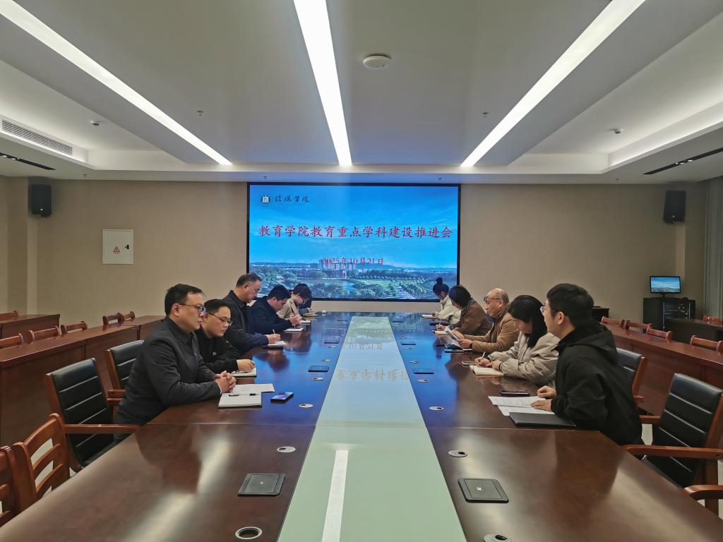 为深入贯彻落实教育高质量发展战略,扎实推进教育重点学科建设,10月21日下午,教育学院在教三楼521会议室召开了教育重点学科建设推进会,学院行政领导班子、学科带头人赵国权教授、各教研室主任参加了此次会议。