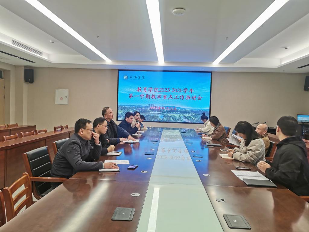 为明确和部署期中阶段的教学重点工作任务,10月21日下午,教育学院班子成员和教研室主任在521会议室召开了期中教学重点工作推进会,副院长段海丹主持会议。