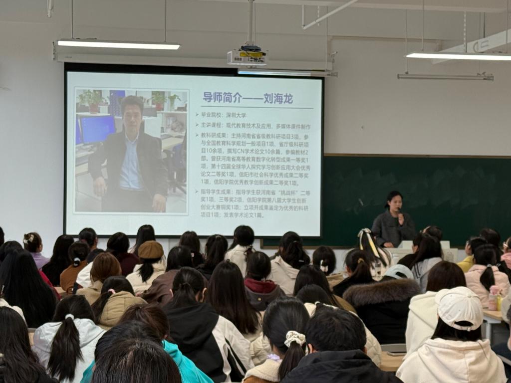 导师代表王雪静老师结合自身经验发言,分享导师职责与帮扶计划;学生代表王培语表态,表达积极配合学业导师制、认真规划学业的决心。之后,牛婷老师介绍各位学业导师的专业背景与指导方向,并宣读学业导师分配表,明确师生对接关系。