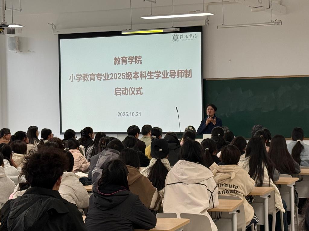 10月21日下午,小学教育专业在教三楼406召开了2025级本科生学业导师制启动会。会议由刘海龙主任主持,小学教育专业学科带头人刘岸英教授、导师代表王雪静老师、学生代表王培语及2025级全体本科生参会。