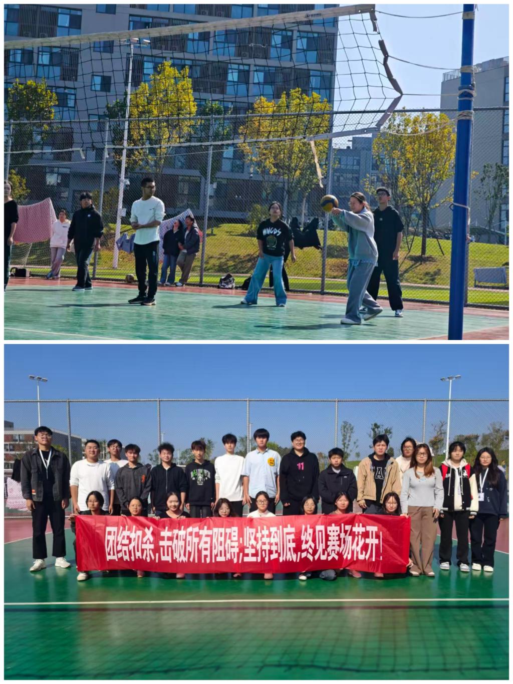 排球场上,新生球员们精神饱满、斗志昂扬,有力扣杀、飞身拦网,每一个动作都展现出扎实的功底,双方比分交替上升,每一场胜利都充分展现了永不言弃的体育精神。