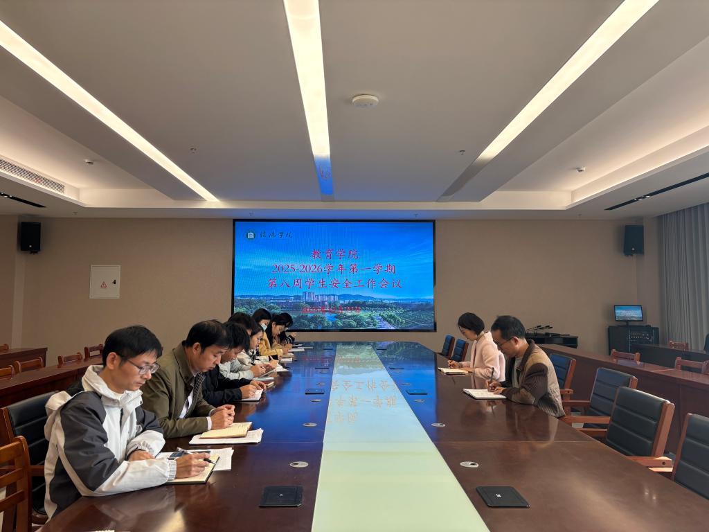 为进一步强化学生安全管理,筑牢校园安全防线,10月29日,教育学院在教三楼521会议室召开了2025-2026学年第1学期第八周学生安全工作例会。党总支书记刘颖方、学工干事胡超及全体辅导员参加会议。