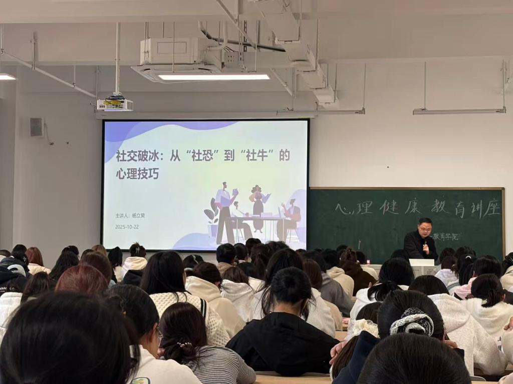 为提升学生心理健康素养,营造积极健康的校园氛围,10月28日,教育学院在教三507教室成功举办以“社交破冰”为主题的心理健康教育讲座。活动旨在帮助学生掌握情绪识别、压力管理与人际沟通的方法,增强心理调适能力,促进同学间互助关怀,共同构建健康和谐的学习生活环境。