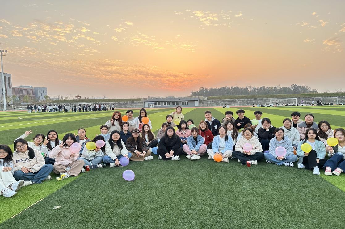 “同心协力踩气球”作为开场环节,迅速点燃了现场气氛。同学们在保护自己气球的同时,灵活出击、紧密配合,在协作中拉近了彼此距离。“桃花朵朵开”环节中,大家根据指令快速寻找同伴、组成对应“花团”,敏捷的反应和欢快的互动使得现场气氛持续升温。而在“压力爆破丢沙包”中,投手精准出击,防守方灵活闪避,彼此默契配合,欢呼声与笑语不绝于耳,压力也在奔跑与欢笑中悄然释放。