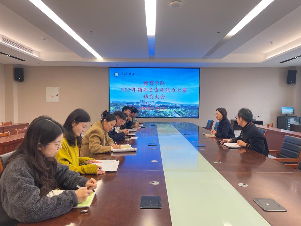 为了进一步提升辅导员队伍的专业化、职业化水平,强化思想政治育人职责,推动学生工作高质量发展,11月12日,教育学院在教三楼521会议室召开辅导员素质能力大赛动员大会。参加本次会议的有学院党总支书记刘颖方、学工干事胡超以及全体辅导员。