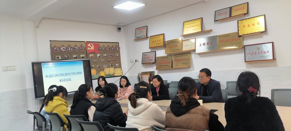 11月26日下午,为进一步深化校企合作,精准掌握学前教育专业学生的实习动态,促进理论与实践的深度融合,教育学院康耀华和吴琳老师前往信阳市羊山新区幼儿园开展实习基地走访交流活动。此次活动得到了羊山新区幼儿园的高度重视,王思文园长、保教主任及教师代表共同参与,双方进行了深入的交流与探讨。