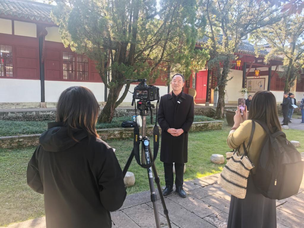 在鹅湖书院的分论坛中,赵国权教授在第一分会场发表题为《鹅湖之会:书院会讲的巅峰对决》的专题报告。作为中国庙学研究领域的资深学者,他以详实史料为支撑,梳理了鹅湖之会缘起——理学内部“理在万物”与“心即是理”的分歧,及吕祖谦为促成学派共生发起会谈的背景,深入解析朱陆双方围绕“泛观博览与发明本心”“尊德性与道问学”的核心论辩,生动还原了这场跨学派会讲的思想碰撞,阐释盛会对理学多元发展、书院精神传承的深远影响,强调其打破门户、平等对话的传统对当代学术交流的启示。报告兼具历史深度与学术厚度,引发与会学者广泛共鸣。报告结束后,赵国权教授还接受了地方新闻媒体的电视采访,其会议论文也被鹅湖书院推到书院的微信公众号里,产生较大的学术影响。