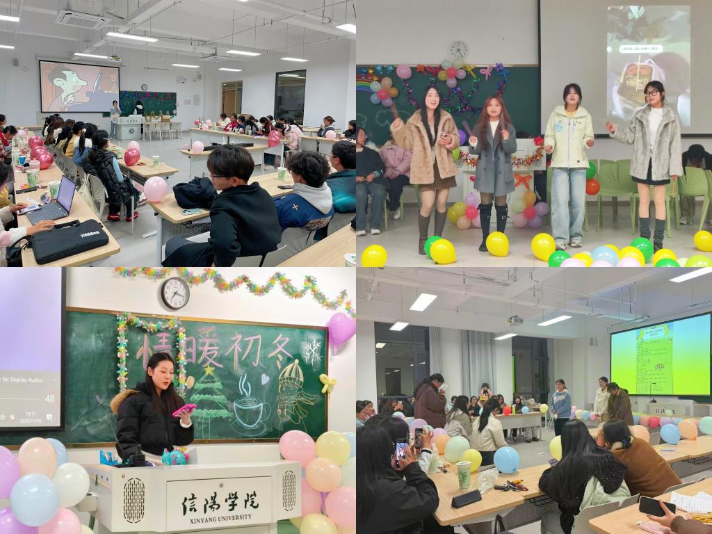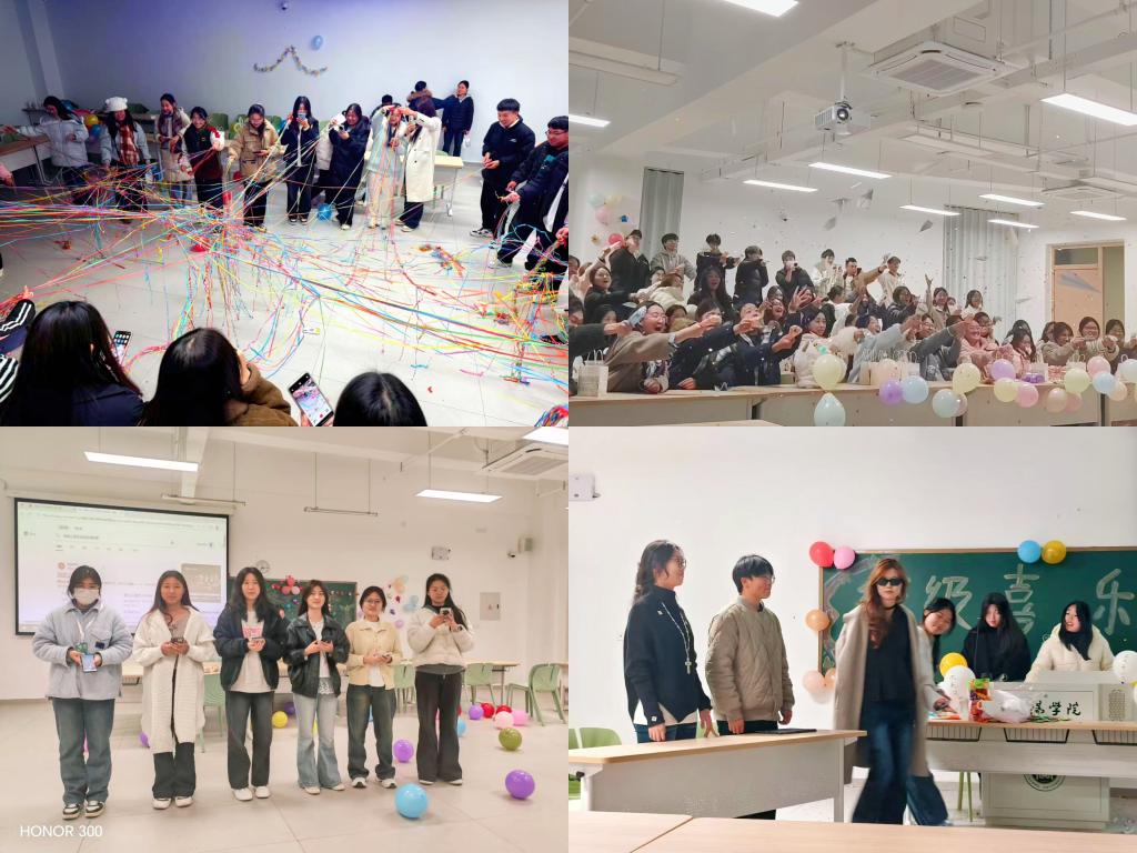 11月30日晚,各班级在教三楼各教室举办“星光映班级,秀出真自我”班级喜乐会,辅导员、学业导师等也积极参与其中。喜乐会上,乐器演奏、唱歌、跳舞、相声、小品、脱口秀等多元节目轮番上演。歌声清亮时全场轻声和,舞蹈动感处掌声雷动,相声小品的包袱一抛就引爆满堂笑。节目间的互动小游戏更是把气氛推到高潮,原本安静的冬夜,被这满屋子的笑声和歌声捂得暖乎乎的,每个班级都把这场喜乐会装进了青春的“限定记忆盒”里。