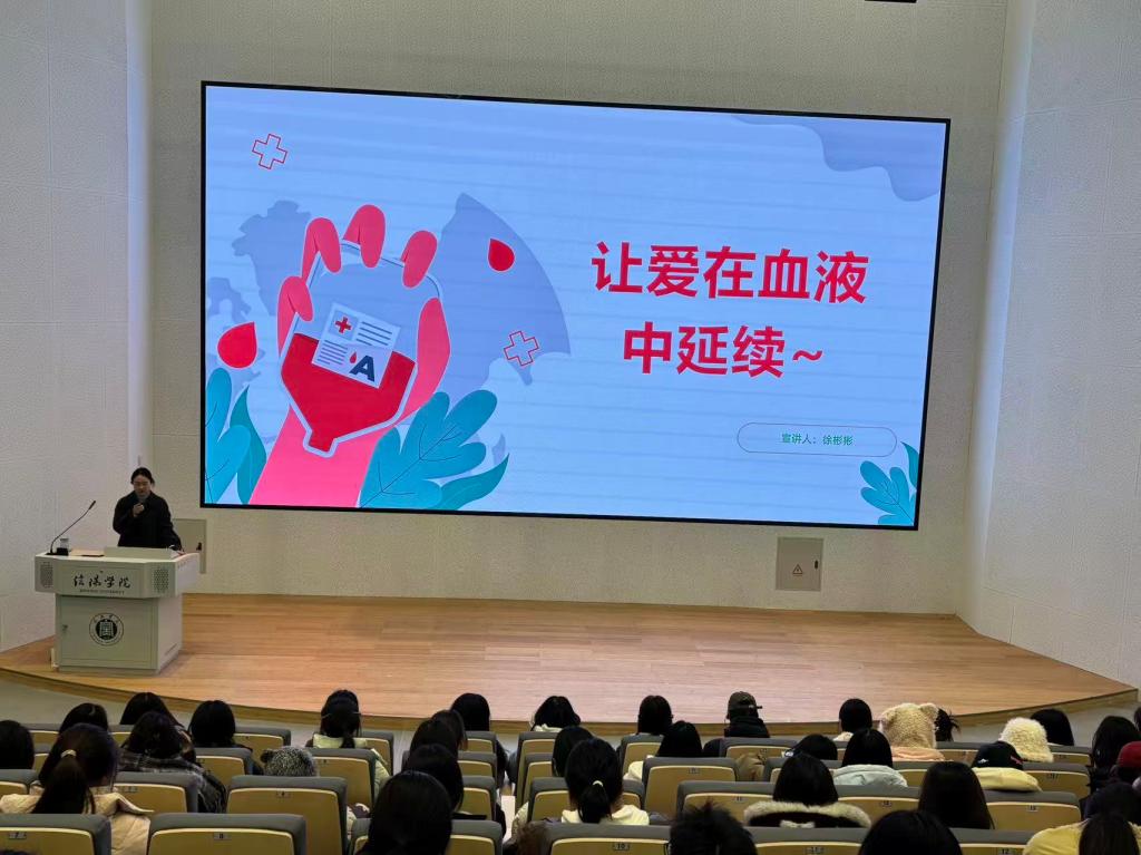 为普及无偿献血知识、弘扬公益奉献精神,12月3日晚,教育学院于南湖校区教三楼005报告厅组织开展“让爱在血液中延续”主题献血知识宣讲会,本次活动邀请信阳市中心血站宣讲人徐彬彬医生主讲,学院各年级300余名学生代表参与此次讲座学习。