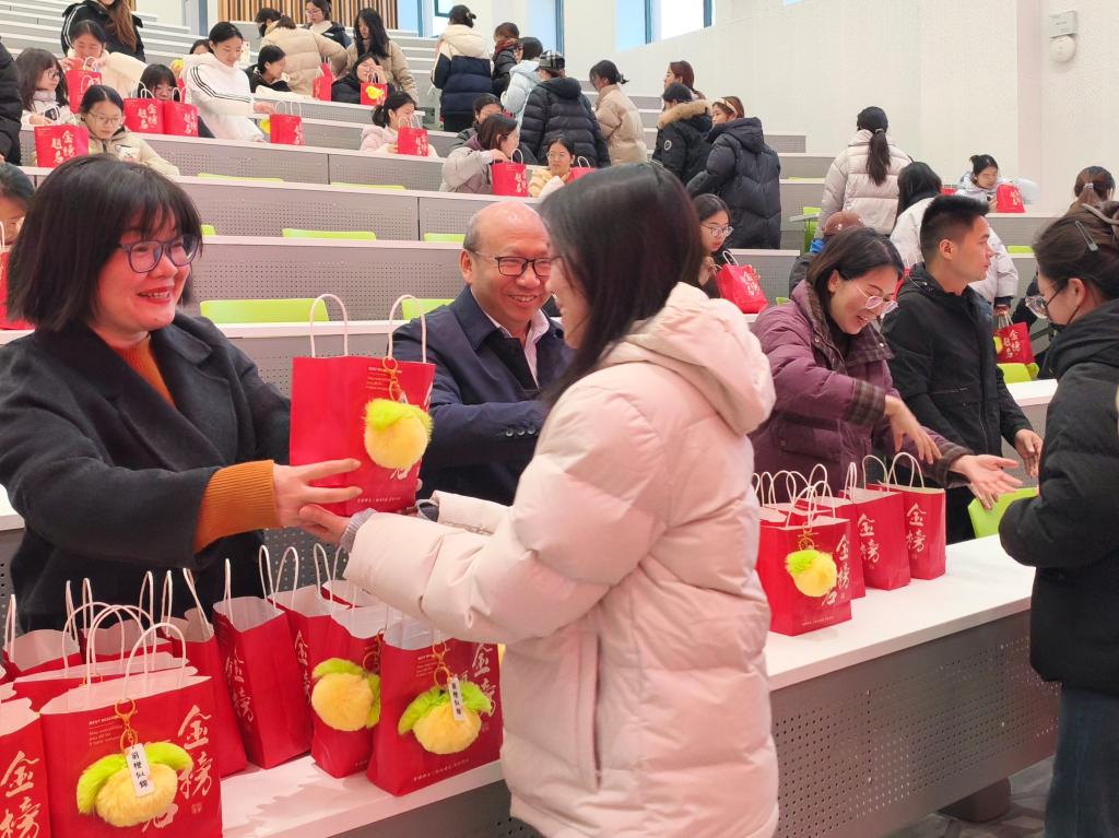 在寄语环节结束后,汪基德院长带领学院领导老师一起为每位考研学生发放了精心准备的小礼物,承载着学院的关怀与祝福。随后,师生们共同合影留念,将这份温暖与鼓励定格为美好回忆。