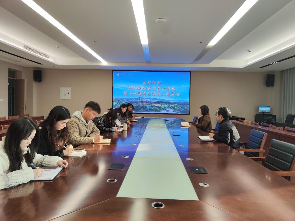 为全面提升学院学生安全管理效能,织密年末关键阶段学生安全防护网,12月10日,教育学院在教三楼521会议室召开本学期第十四周学生安全工作例会。党总支书记刘颖方、学工干事胡超及全体辅导员参加会议。