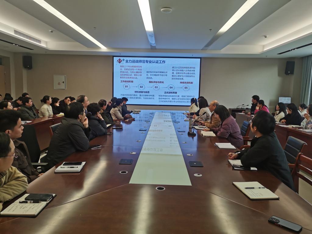 段海丹就2026年心理学师范专业认证以及2027年小学教育师范专业认证的相关工作进行了重点强调和详细部署。她指出,这两项认证工作是学校提升师范教育质量、强化专业建设的重要契机,必须高度重视、提前规划、扎实推进。学院接下来会制定详细的工作方案,明确责任分工与时间节点,确保各项准备工作有序高效开展。同时,她特别强调在师资队伍建设、优化课程体系、完善实践教学环节方面重点发力,以全面提升师范生的综合素养与专业能力,为顺利通过专业认证奠定坚实基础。