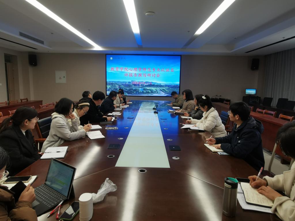 3月12日上午,教育学院于521会议室召开心理学师范专业认证自评报告撰写研讨会,党总支书记刘颖方、副院长段海丹等班子成员及全体心理学教研室老师参会,会议由段海丹主持。