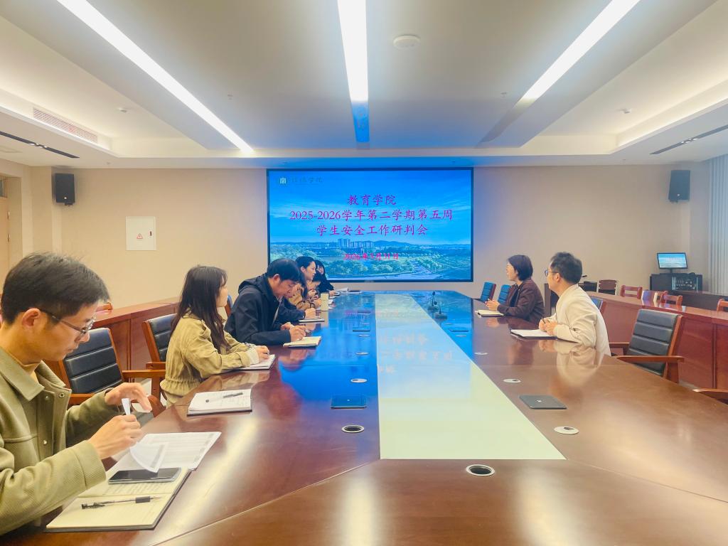 为了切实强化学生安全管理,优化学风建设,保障毕业生就业工作顺利推进,3月31日,教育学院在教三楼521会议室召开2025—2026学年第五周学生安全工作研判会。学院党总支书记刘颖方、学工干事胡超及全体辅导员参加会议。