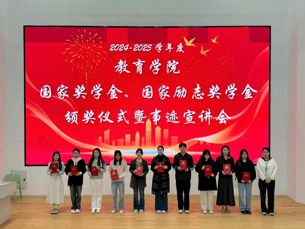 为充分发挥国家奖学金、国家励志奖学金的激励示范作用,树立学生榜样,激发学院学子争先创优的热情,3月31日,教育学院在教三楼005报告厅举行2025年度国家奖学金、国家励志奖学金颁奖暨励志事迹宣讲活动。