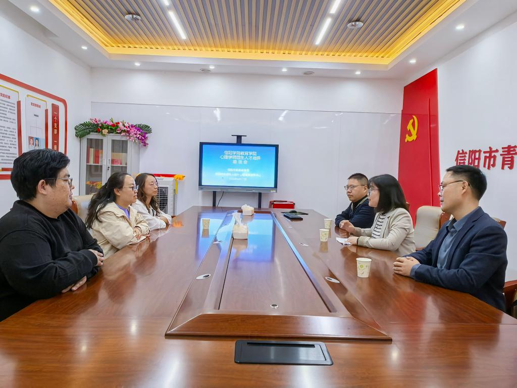 4月17日,教育学院副院长段海丹、心理学教研室主任杨立昊、实验室主任郑杨一行赴信阳市教育体育局、信阳市青少年校外心理健康辅导中心,就心理学专业师范生人才培养展开深入交流。信阳市青少年校外心理健康辅导中心主任马悬及中心骨干教师代表出席会议。