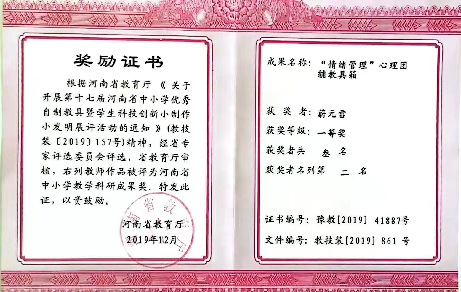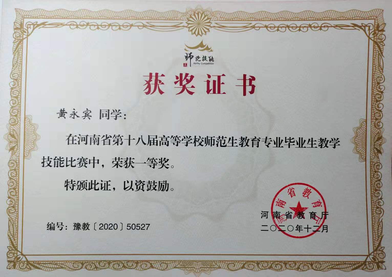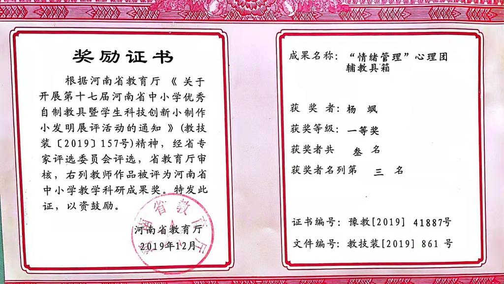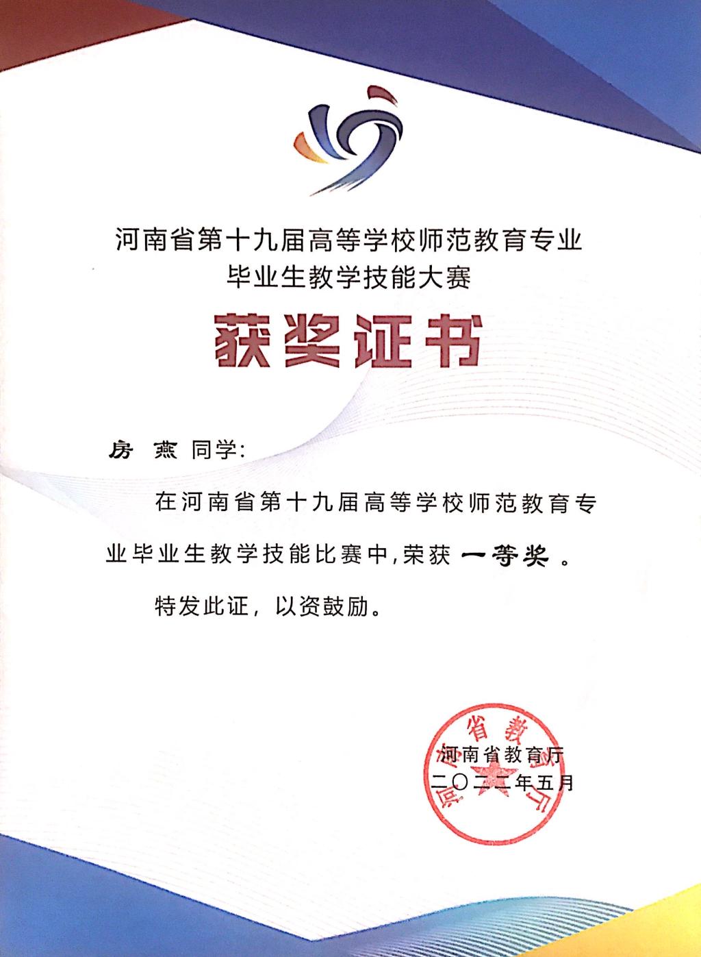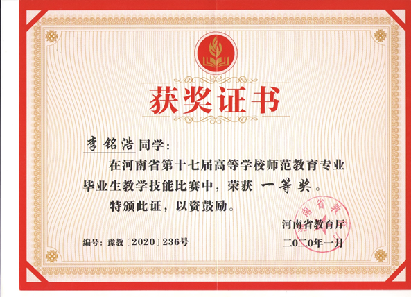 教育学院心理学教研室杨立昊荣获“河南省2019年度文明教师”荣誉称号;崔亚萌荣获“河南省教学标兵”荣誉称号;段海丹荣获“青年教学名师”荣誉称号。在信阳学院青年教师教学技能竞赛中陈小静、刘兰兰、段海丹、闫晓丽连年荣获一等奖。这些荣誉的获得充分展示了教育学院教师卓越的教学技能和良好的教学风采。在省教育系统战“疫”优秀网络文化作品评选活动中,教育学院教师翟海燕的原创歌曲《相依》被评为战“疫”优秀网络文化作品。在河南省教育厅举办的师德征文主题评选中,陈小静所撰写的文章荣获二等奖。