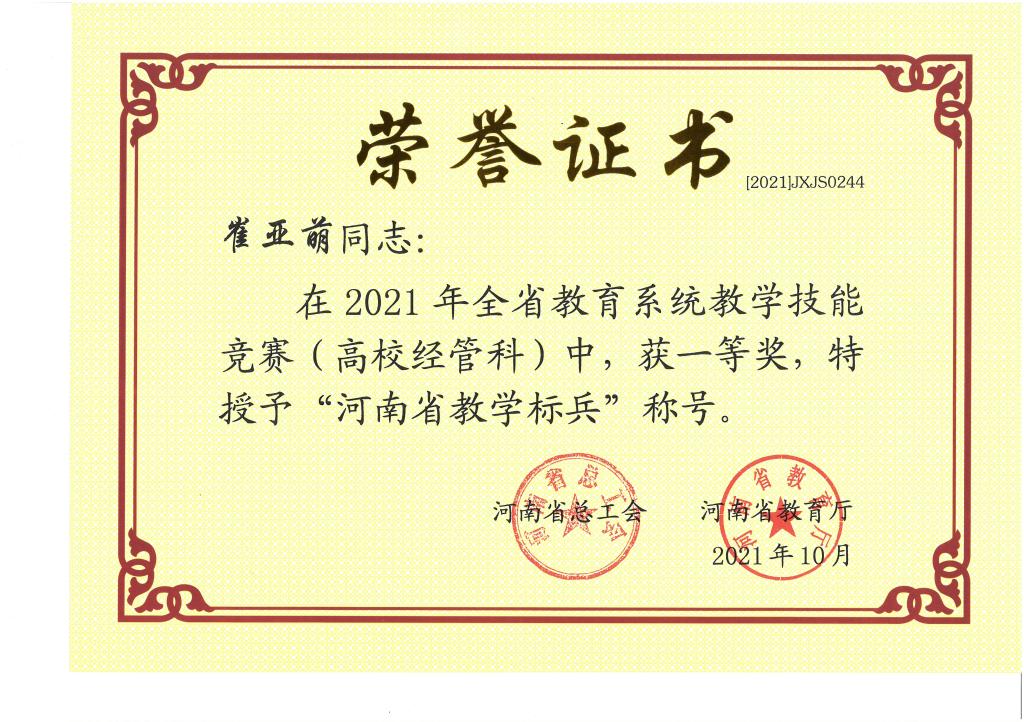 在河南省师范生教学技能竞赛中连连荣获一等奖,毕业生就业率、职业资格证书获取率、大学英语四六级通过率不断提升,在其他活动中也纷纷获得省级奖乃至全国奖。