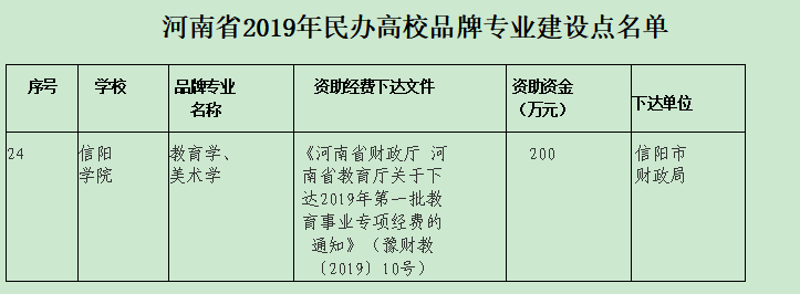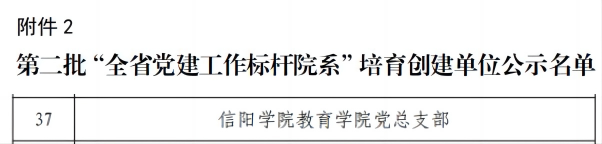 教育学院的前身是信阳学院社会科学学院,2006年开始,先后有心理学、教育学、学前教育和小学教育专业招收本科生。2018年独立建院。学院设有教育学、心理学、小学教育、教师教育4个教研室和应用心理研究所、中国庙学研究中心、乡村教育振兴研究中心3个研究机构。以“求真知,做真人,育真才”为院训。